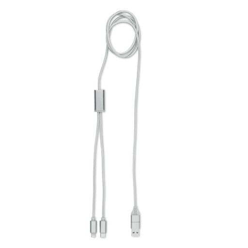 Alumínium töltőkábel 2 az 1-ben C-típusú, USB-A és mikro USB-B bemenetel, C-típusú és mikro USB-B kimenettel. Kábel hossza: 120 cm.