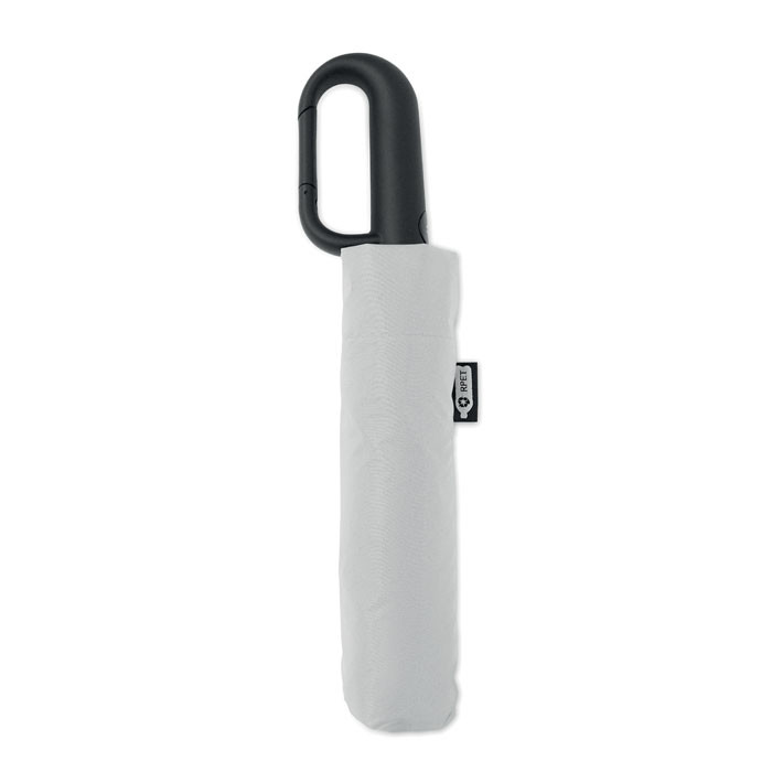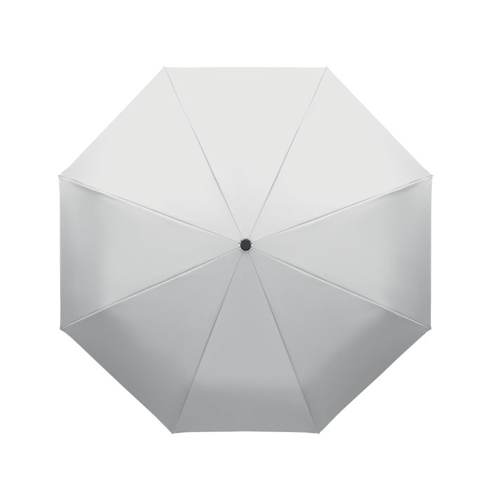 Összecsukható 21'' szélálló esernyő teljes fekete bevonatú üvegszálas vázzal, 2 szekcióval. Üvegszálas bordák. 190T RPET pongyola panelek. D alakú karabineres fogantyú w / gumi kivitelben,. Automatikus nyitás és zárás. Tartalmazza a tasakot