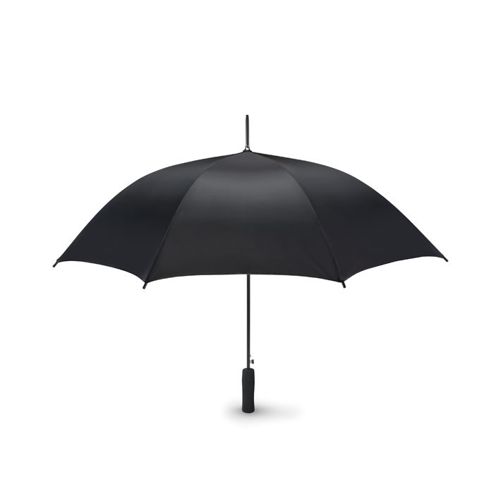 23 colos automata esernyő 190T pongee anyagból. Fekete fém nyél és váz. Fekete műanyag végek. Fekete egyenes, EVA markolat. Manuális záródás.