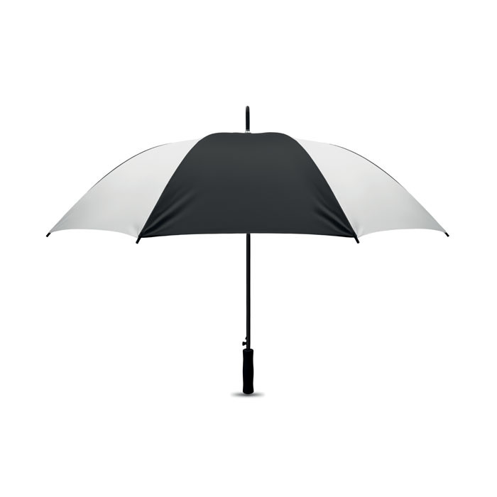 27 colos automata nyersselyem esernyő. EVA fogantyú. Fekete bevonatú fém váz és fekete műanyag csúcsok.