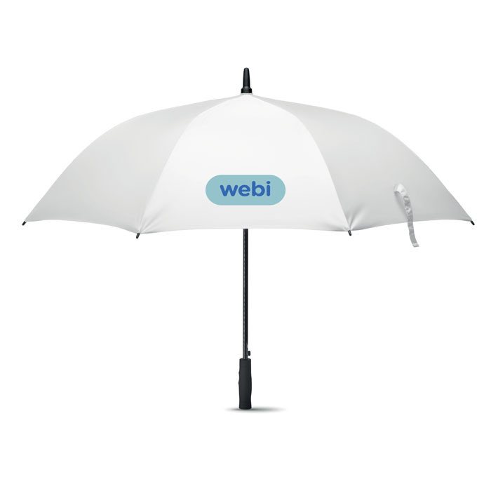 27 colos manuális szélálló esernyő 190T nyersselyem anyagból. Üvegszálas rúd és váz. Fekete műanyag csúcsok. Fekete egyenes gumírozott ABS markolat. Hozzáillő tokban. Manuális záródás.