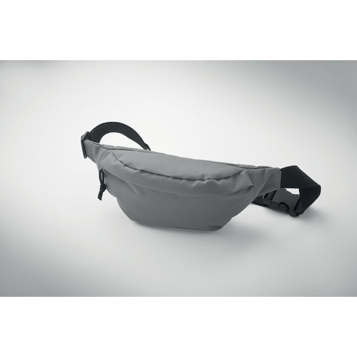 Övtáska 600D RPET poliészterből, cipzáras fő rekesszel és rejtett cipzáras hátsó rekesszel.