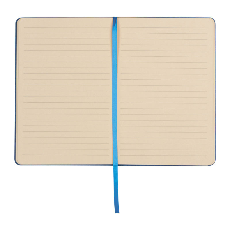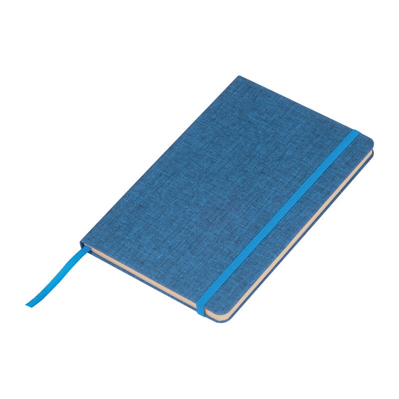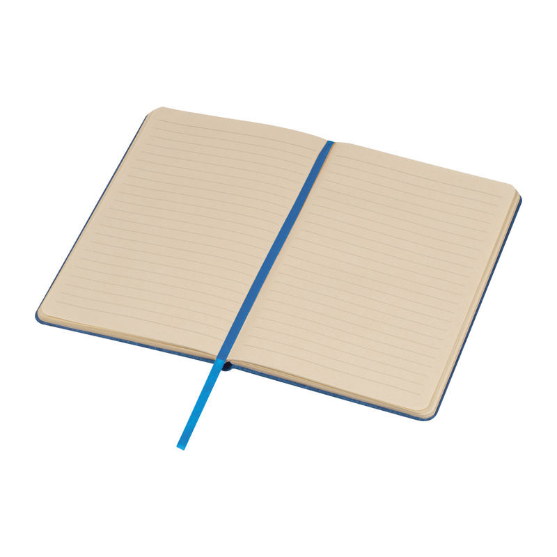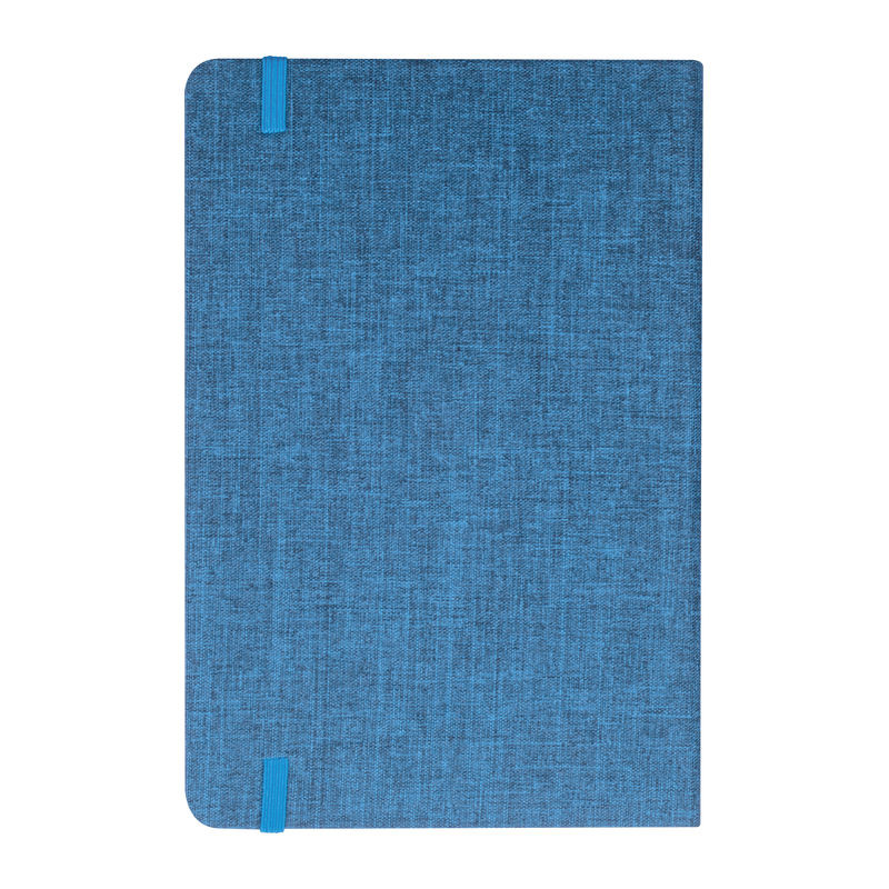 A5 méretű vonalas jegyzetfüzet, melynek borítója újrahasznosított PET vászon anyagból készült, 160 oldal cukornádpapírt tartalmaz. Különlegessége a beépített könyvjelző és a rugalmas zárópánt.