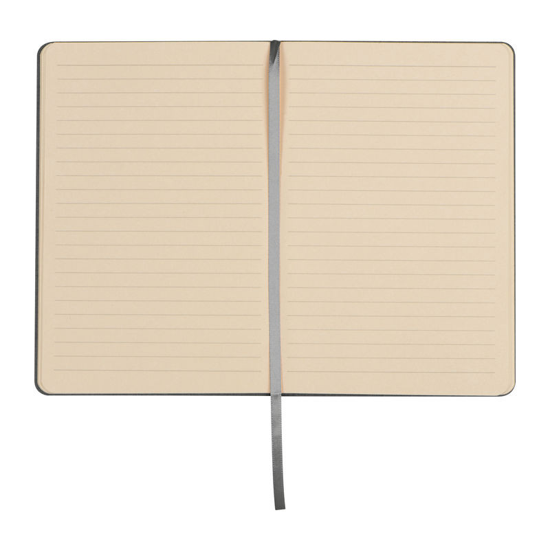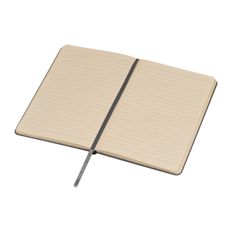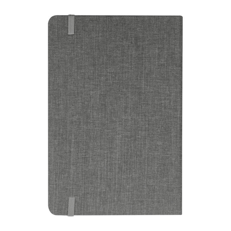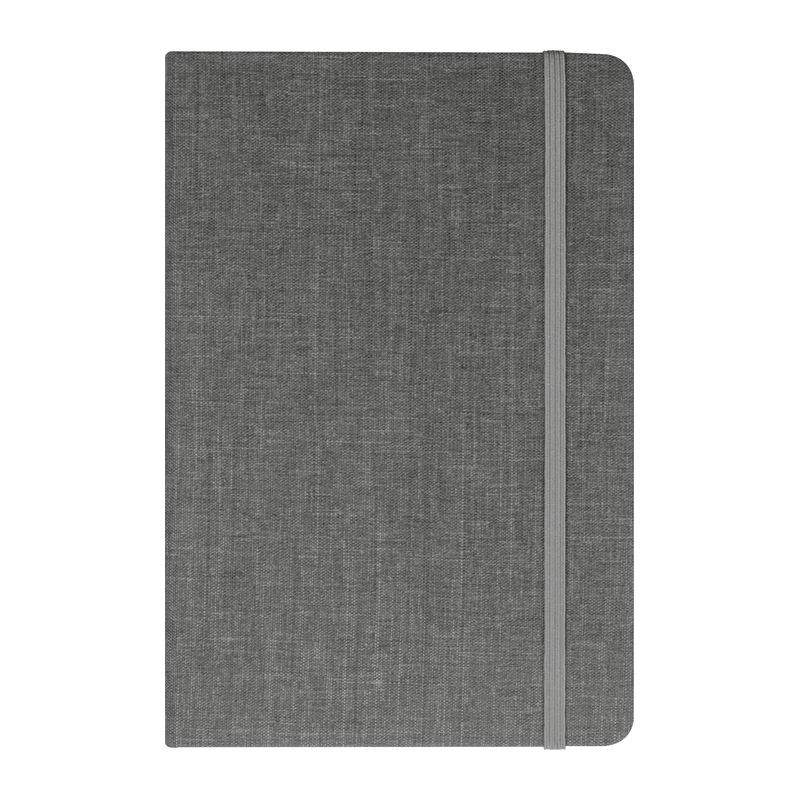 A5 méretű vonalas jegyzetfüzet, melynek borítója újrahasznosított PET vászon anyagból készült, 160 oldal cukornádpapírt tartalmaz. Különlegessége a beépített könyvjelző és a rugalmas zárópánt.