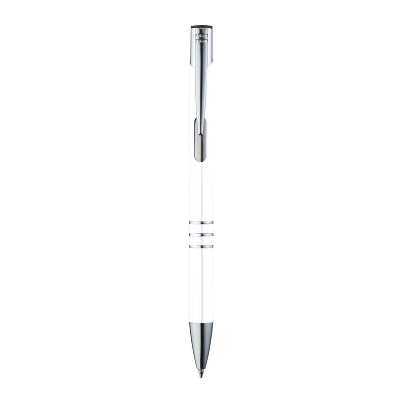 Kéken író fém golyóstoll, különböző színekben, 3 db ezüst gyűrűvel, nyíl formájú klipsszel.