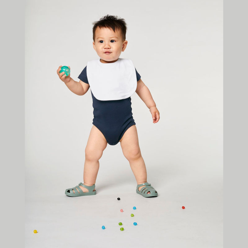 Puha, dupla rétegű előke saját anyagból készült szegéllyel és állítható, dupla patentos záródással. Természetes, kezeletlen, festetlen pamutból készült, hogy a leggyengédebb érintést biztosítsa a baba bőrének.