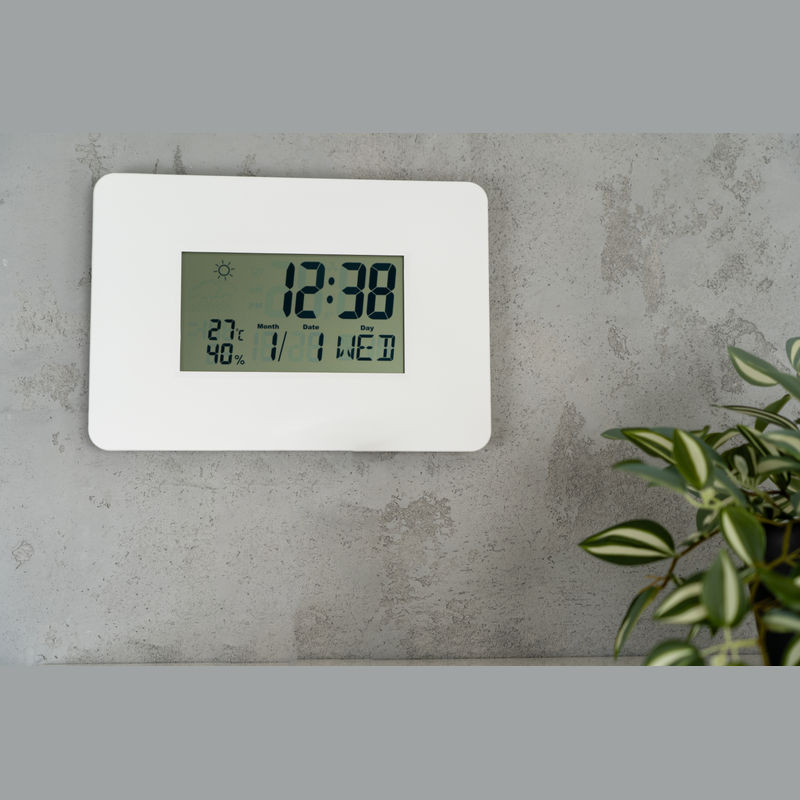 Digitális időjárás állomás naptárral, ébresztő- és szundi funkcióval, hőmérővel és páratartalommérővel (az értékek automatikus frissítése 20 másodpercenként történik) és időjárás kijelzővel. A hozzávaló AAA elem külön rendelhető (cikkszám: 999400).