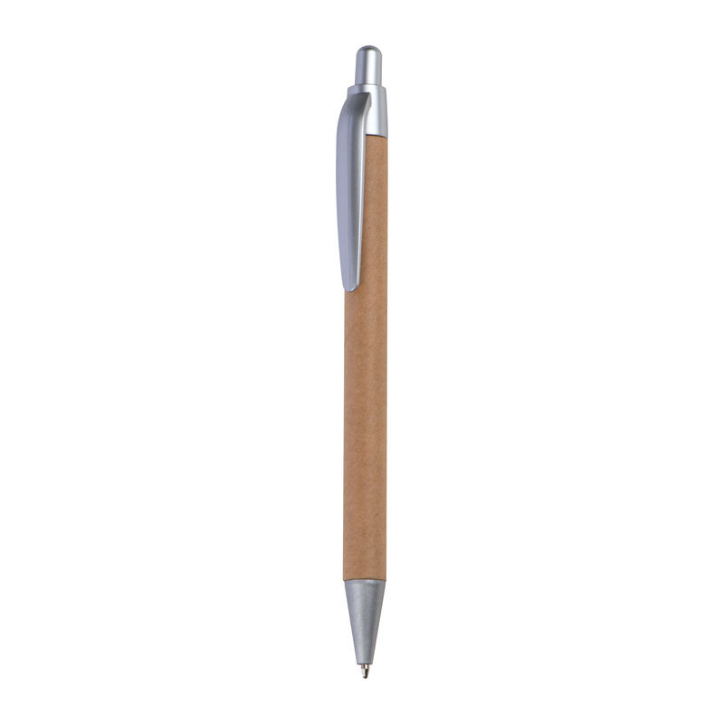 Kéken író papír golyóstoll, újrahasznosított kartonpapírból, ezüst kiegészítőkkel.