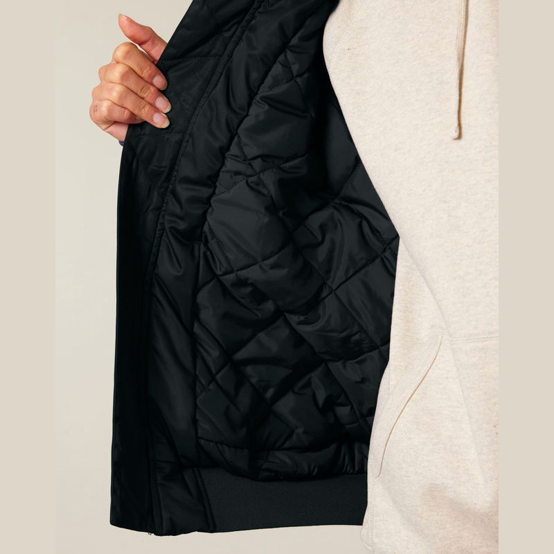 Ez a klasszikus uniszex bomber dzseki ötvözi a vintage stílust a modern eleganciával. 100%-ban újrahasznosított poliészterből készült.