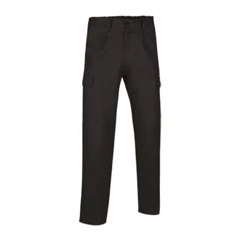 65% poliészter, 35% pamut. 210gr/m² twill anyag. Elasztikus derékrész a hátoldalon. 2 zseb elől. 2 oldalsó tépőzáras zseb. 1 zseb a jobb hátsó részen. Gombos és cipzáras záródással.