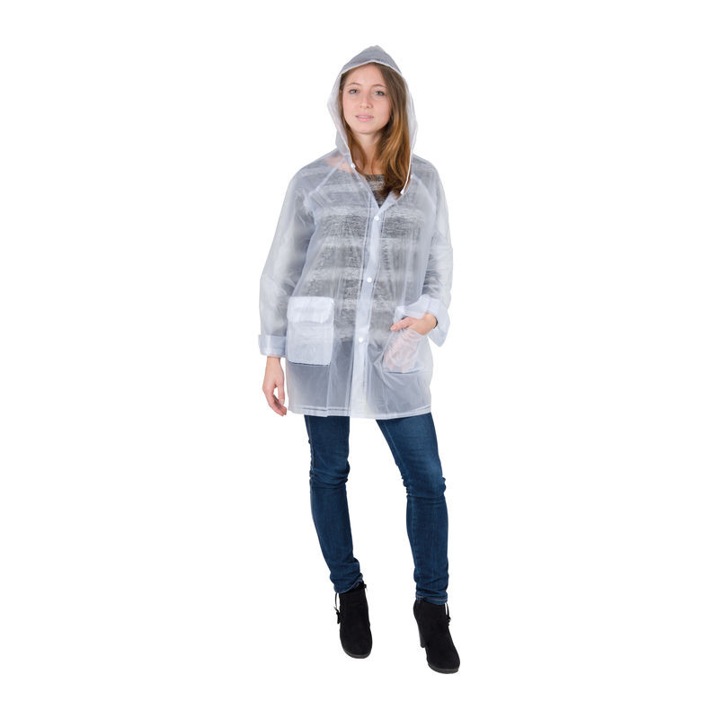 PVC esőkabát kapucnival, 2 zsebbel és patentokkal, XL-es méretben.