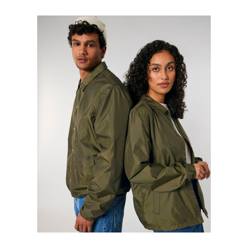 Elegáns uniszex edződzseki, amely bevarrt ujjakkal, fém patentokkal, belső cipzárral, ferde zsebekkel, félig elasztikus mandzsettával és húzózsinóros szegéllyel rendelkezik.