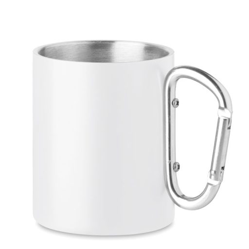 Duplafalú rozsdamentes acél bögre, nagyméretű karabiner füllel. Űrtartalom: 300 ml.