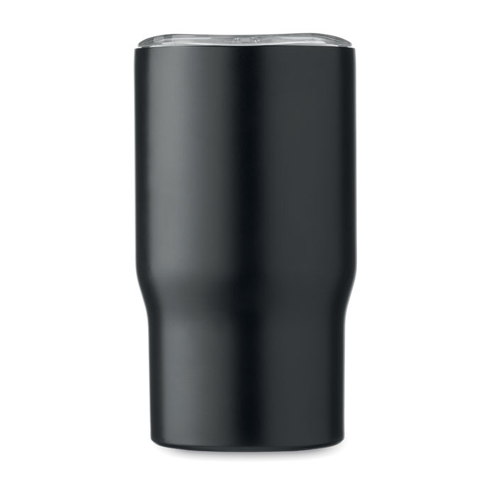Duplafalú pohár újrahasznosított rozsdamentes acélból (90% újrahasznosított rozsdamentes acél és 10% rozsdamentes acél), fa füllel, a fedélben csúsztatható ivónyílással. Űrtartalom: 350 ml.szivárgásmentes.
