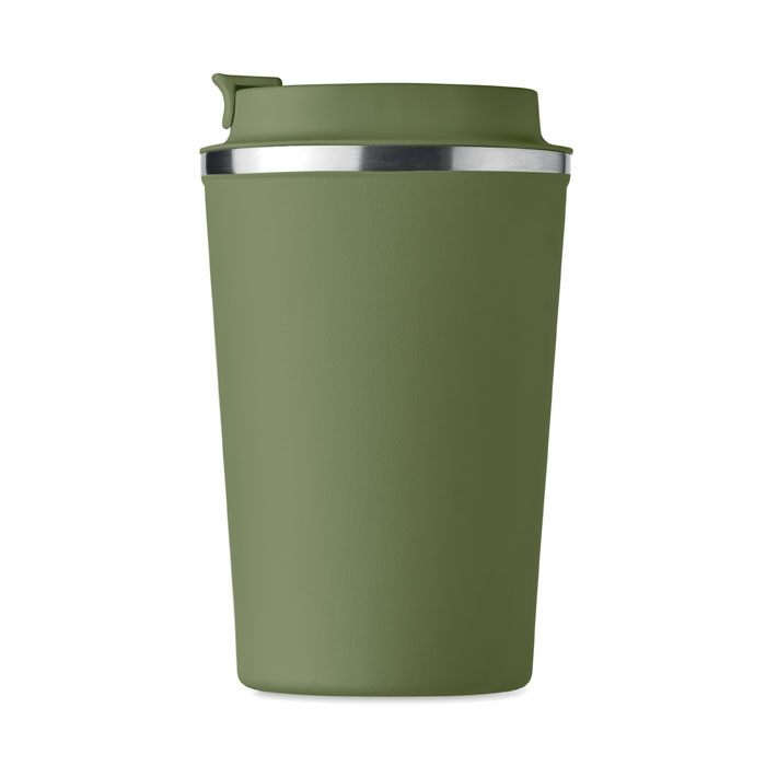 Duplafalú rozsdamentes acél pohár PP fedéllel. Űrtartalom: 350 ml. Szivárgásmentes.