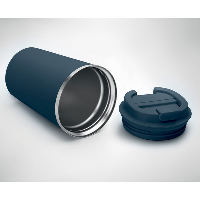 Duplafalú rozsdamentes acél pohár PP fedéllel. Űrtartalom: 350 ml. Szivárgásmentes.
