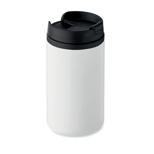Duplafalú rozsdamentes acél bögre. PP belső rész. Űrtartalom: 250 ml. Szivárgásmentes.