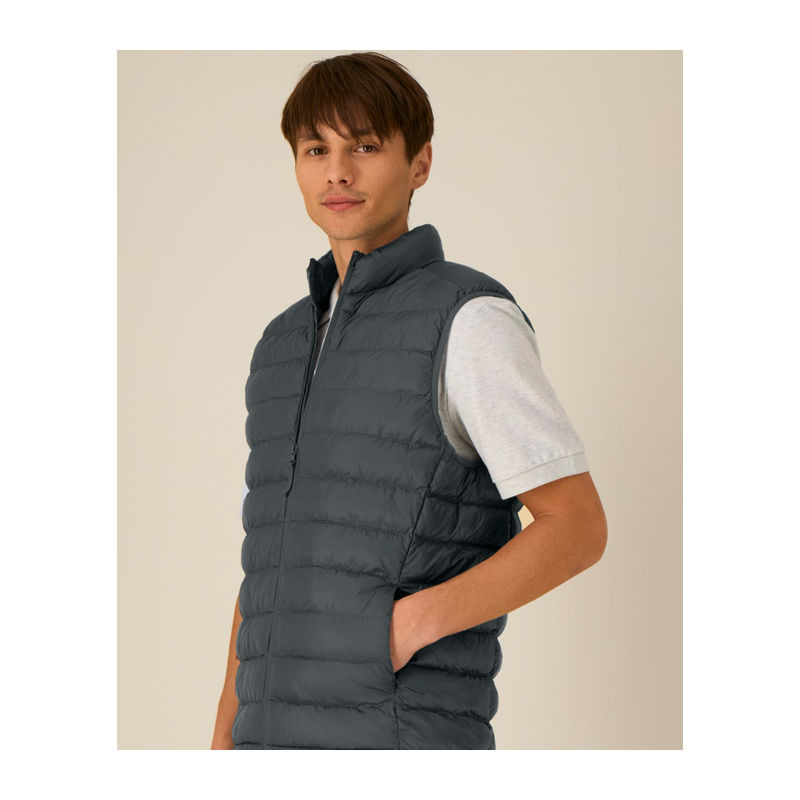 Ujjatlan kialakítás. Magas gallér. Fordított nejlon cipzár elöl, középen. Cipzáras zsebek díszszalaggal ellátott húzóval. Rugalmas szegőszalag a karkivágásnál. Teljesen steppelt kivitel. Oldalpanelek a jobb illeszkedésért. A belső varratok szegéllyel eldolgozva. Az alsó szegély állítható műanyag záróval és rugalmas zsinórral.