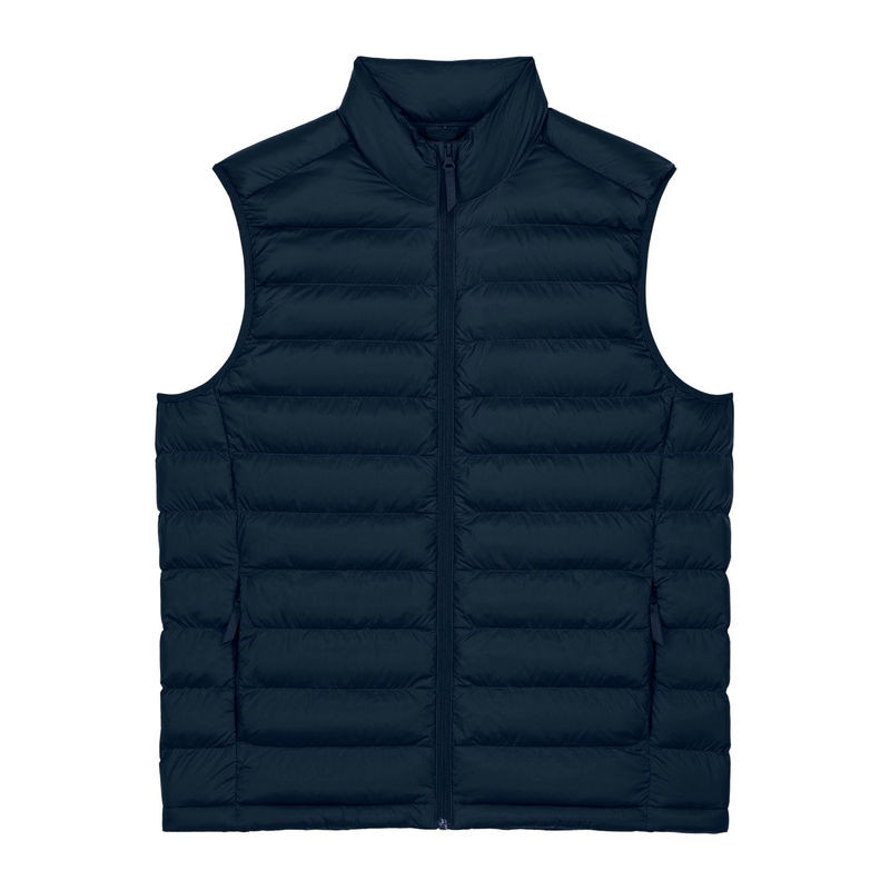 Ujjatlan kialakítás. Magas gallér. Fordított nejlon cipzár elöl, középen. Cipzáras zsebek díszszalaggal ellátott húzóval. Rugalmas szegőszalag a karkivágásnál. Teljesen steppelt kivitel. Oldalpanelek a jobb illeszkedésért. A belső varratok szegéllyel eldolgozva. Az alsó szegély állítható műanyag záróval és rugalmas zsinórral.