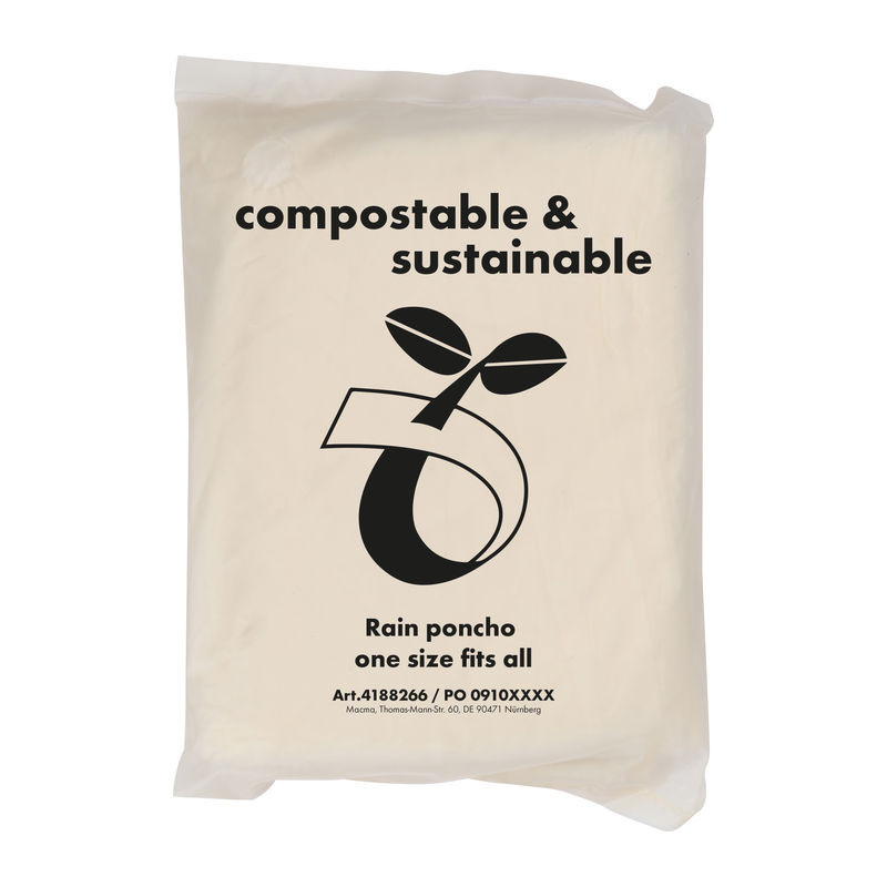 Átlátszó esőköpeny PLA anyagból, hordtáskával szállítva a kényelmes szállításhoz. Ez az esőköpeny teljes mértékben komposztálható. Ftalátmentes.