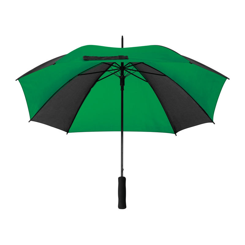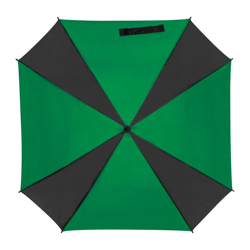 Automata poliészter szögletes esernyő, alumínium vázzal, puha tapintású markolattal, különböző méretű és váltakozó színű panelokkal.