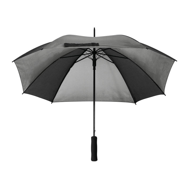 Automata poliészter szögletes esernyő, alumínium vázzal, puha tapintású markolattal, különböző méretű és váltakozó színű panelokkal.