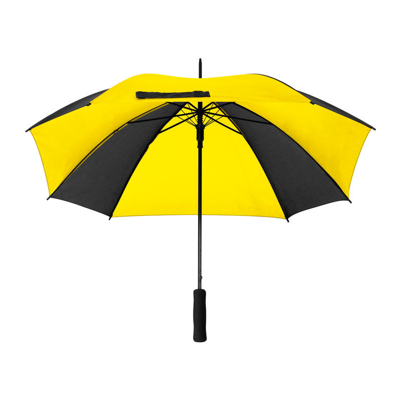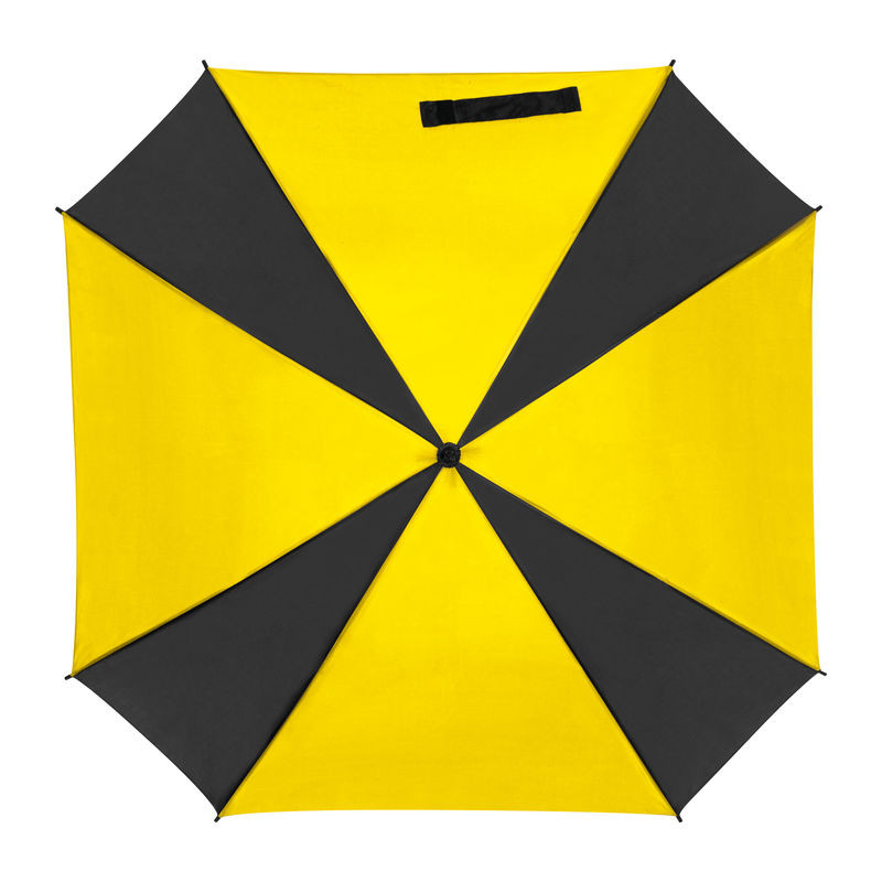 Automata poliészter szögletes esernyő, alumínium vázzal, puha tapintású markolattal, különböző méretű és váltakozó színű panelokkal.