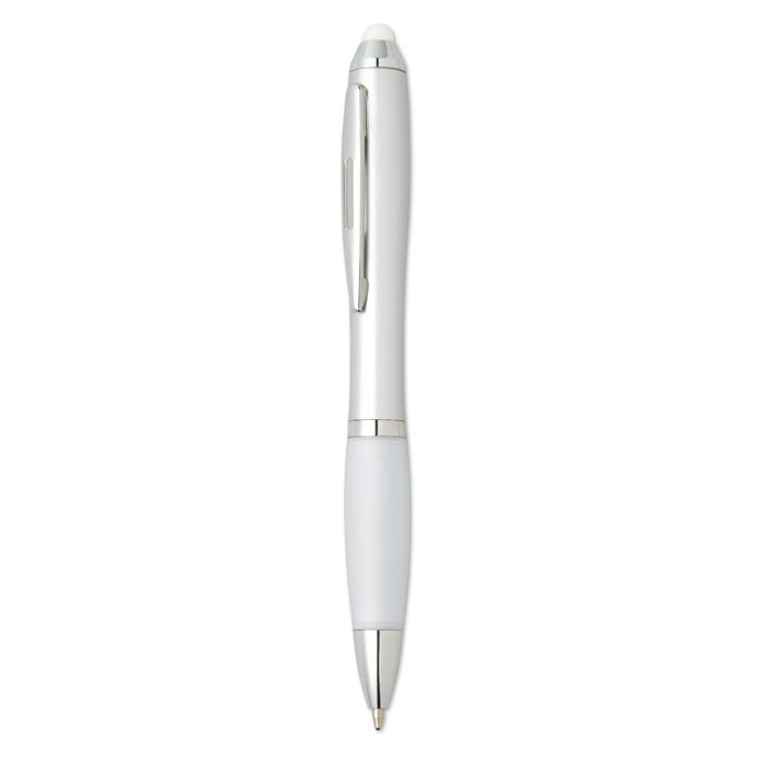 Csavarmechanikás ABS golyóstoll puha markolattal és hozzáillő puha érintőhegy véggel. Kéken író betéttel.