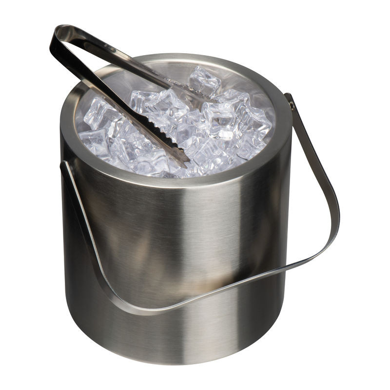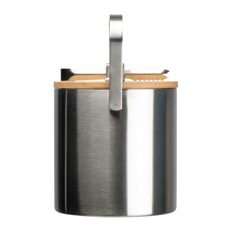 Rozsdamentes acélból készült duplafalú, 1,2 liter űrtartalmú jégvödör, bambusz tetővel és jégkiszedő csipesszel.
