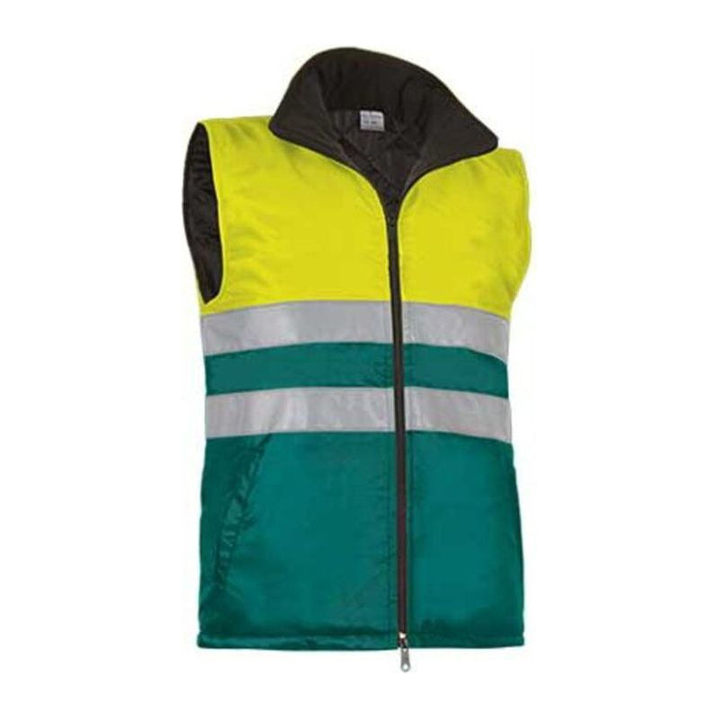 Vízhatlan, poliuretán külső anyag és bélelt 200 g/m² bélésű mellény. A mellényre két láthatósági, fényvisszaverő csíkok lett varva. Cipzárral zárható, gallérja polár bélést kapott a kényelmes viselés érdekében. Két külső és egy belső, cipzárral zárodó zsebe van.