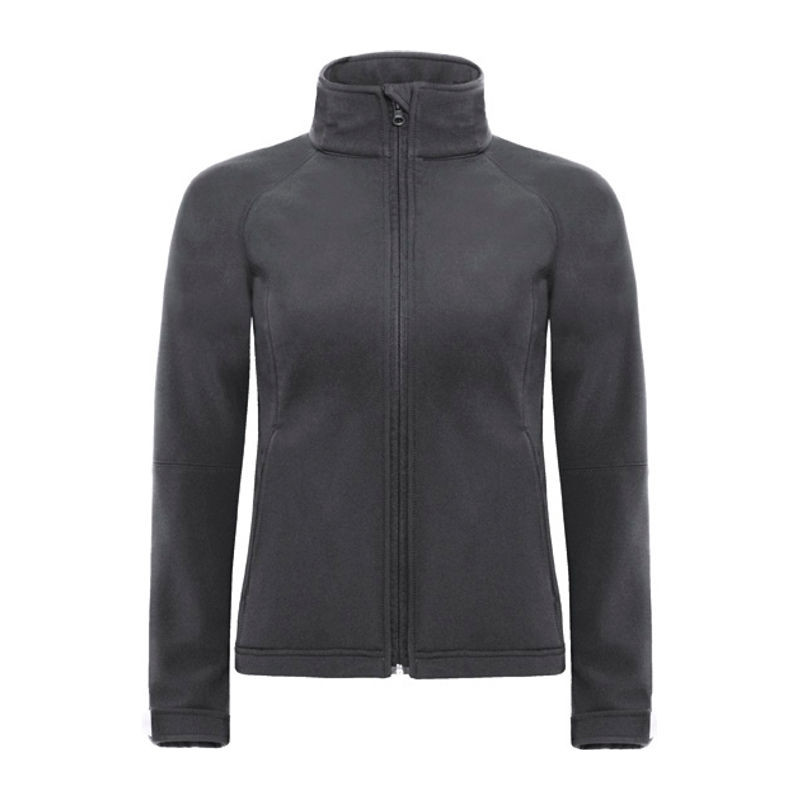Kapucnis női kabát: külső réteg: 94% poliészter+ 6% elasztán, középső rétege: levegős membrán, belső rétege: mikro filc. Légáteresztő, szél és vízálló. A levehető kapucni rögzítő csatos zsinórral rendelkezik. Cipzárral záródó két oldalsó zsebe van és tépőzáras mandzsettái.