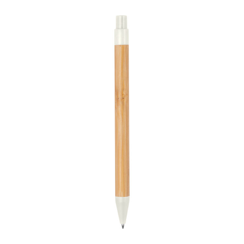 Bambusz golyóstoll színes búzaszalma részekkel és kék színű tollbetéttel.