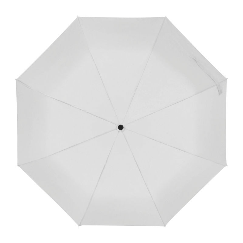 Összecsukható automata esernyő üvegszálas vázzal, újrahasznosított palackokból készült borítással, famarkolattal, csuklópánntal ellátva.