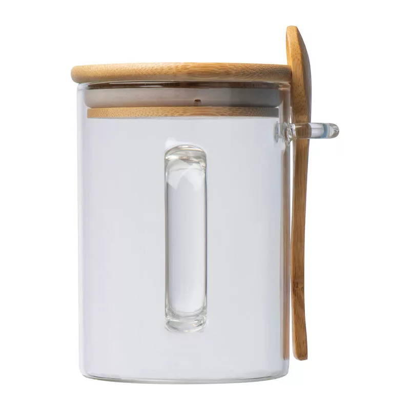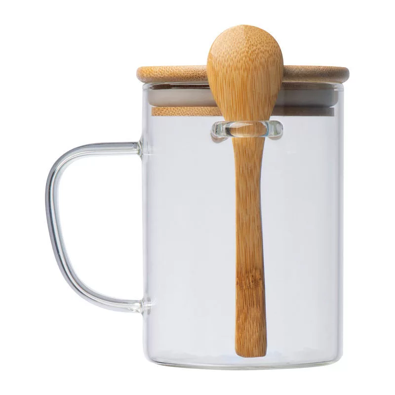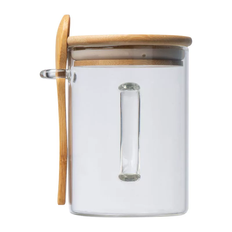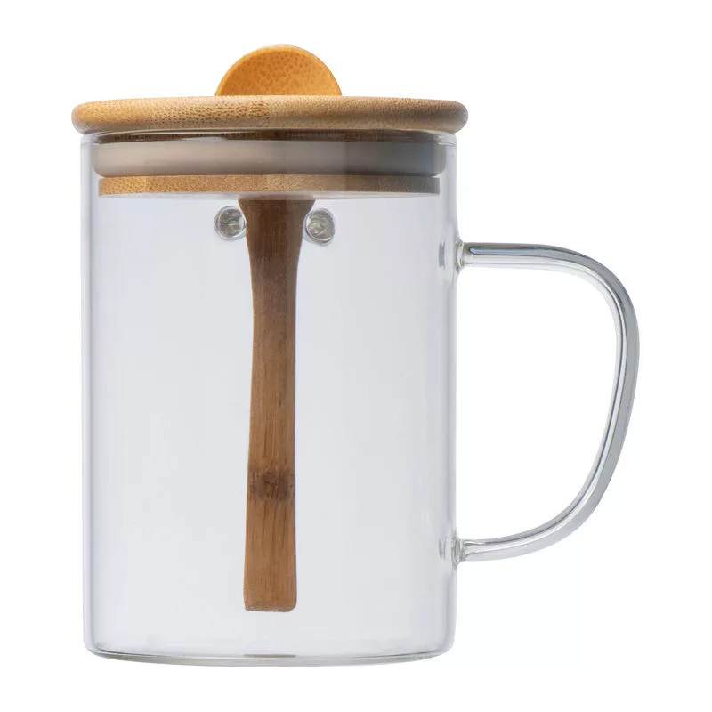 Boroszilikát üvegbögre bambusz fedővel és kanállal. 420 ml űrtartalmú.