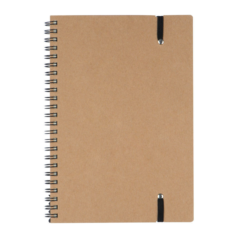 Spirál jegyzetfüzet vagy notesz 120 üres oldallal, jelölő csíkokkal, vonalzóval és gumipánttal.