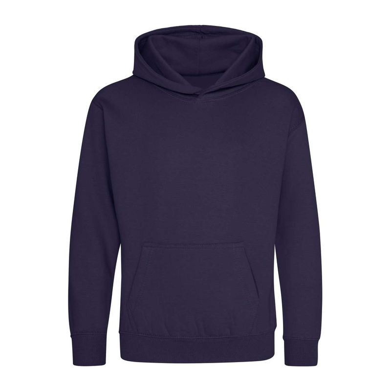 80% gyűrűs fonású pamut, 20% poliészter gyerek pulóver, dupla szövetű kapucnival, kenguruzseb kis rejtett nyílással a fülhallgató kábel kivezetéséhez, egyszerű kitéphető címke, WRAP tanúsítvánnyal rendelkező termék. 280 g/m²