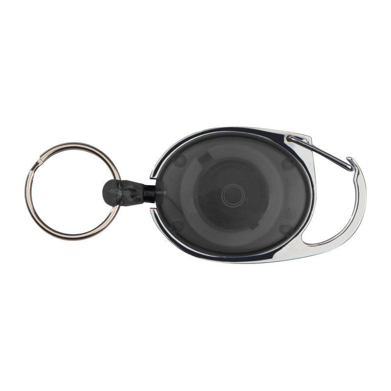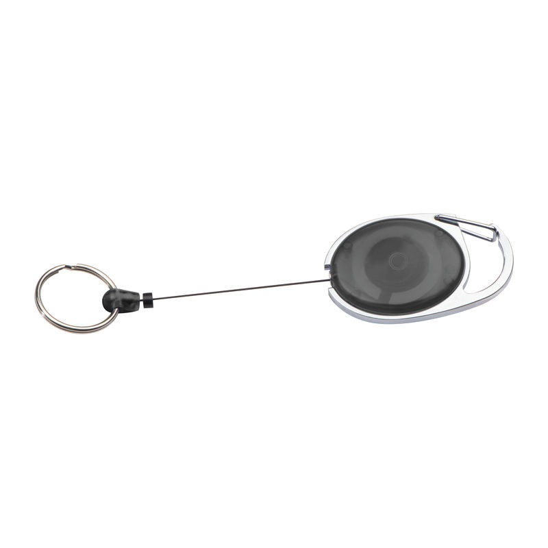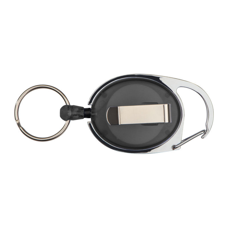 Kihúzható karabineres kulcstartó, övcsipesszel. Ideális belépőkártyákhoz is!