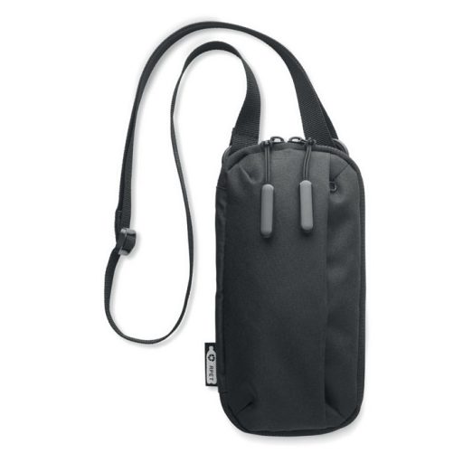 Keresztpántos univerzális okostelefon tartó 300D RPET poliészterből, állítható pánttal. Elülső és oldalsó cipzáras zseb. A fő rekeszben több zseb található.