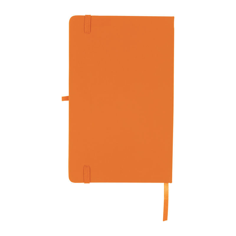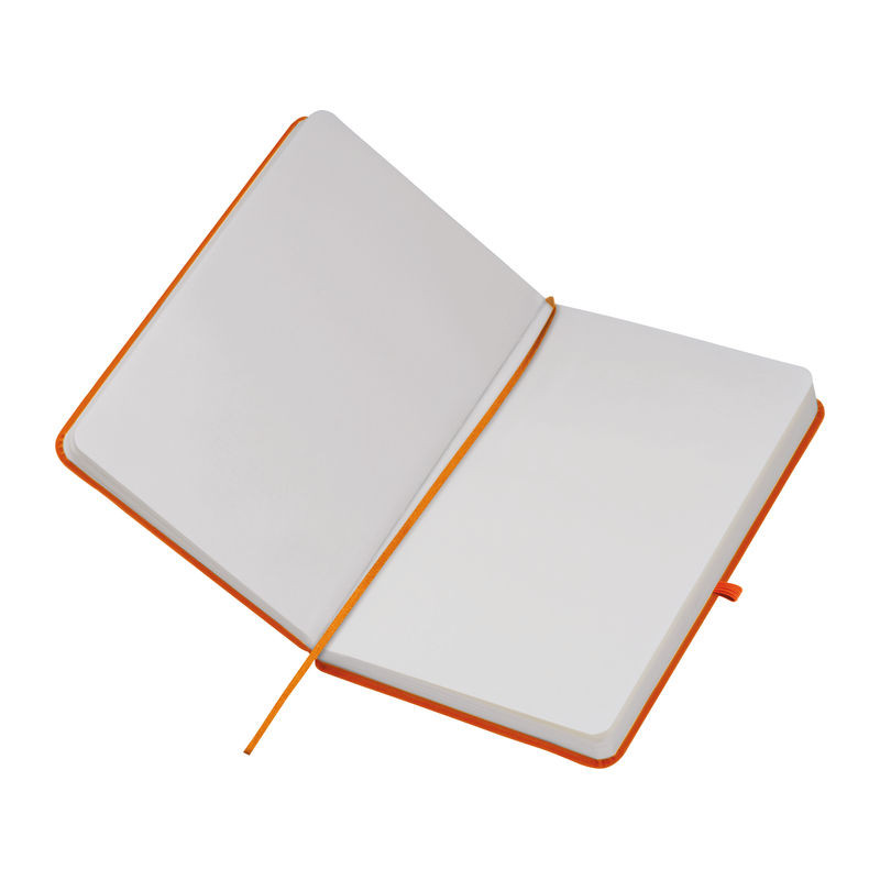A5 méretű jegyzettömb puha PU borítással, 160 sima fehér oldallal. Színes gumis pánttal, könyvjelző szalaggal és praktikus tolltartó hurokkal ellátva.