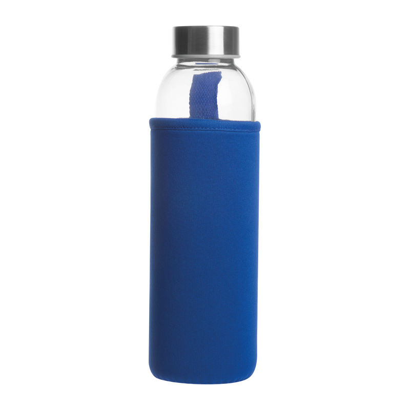 Üveg kulacs neoprén tokban hordozópánttal és szivárgásmentes fém kupakkal. Űrtartalom 500 ml.