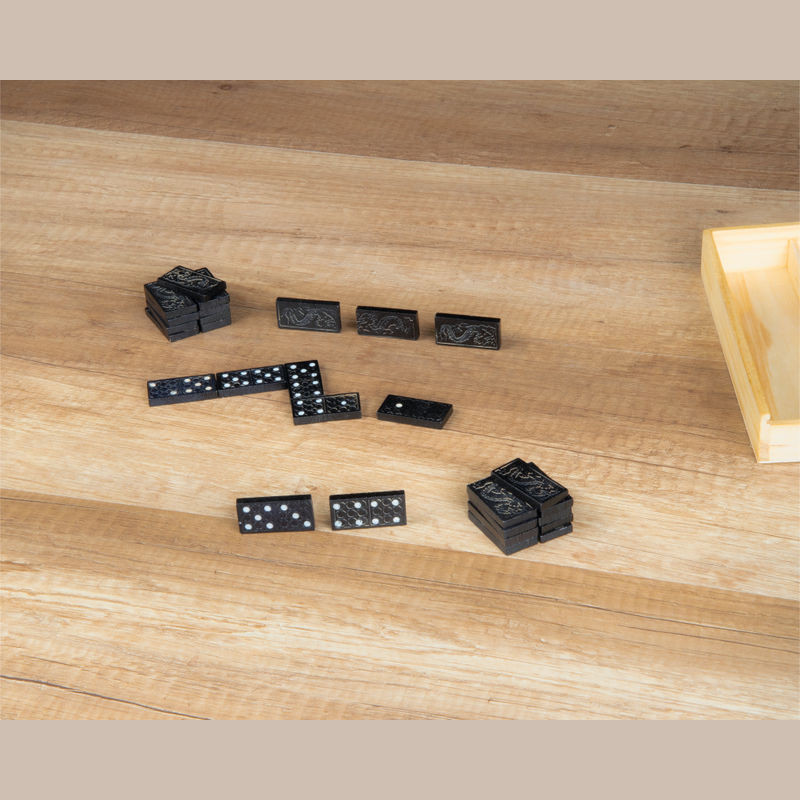 Fából készült domino játék. A hozzá tartozó fadobozban szállítjuk.