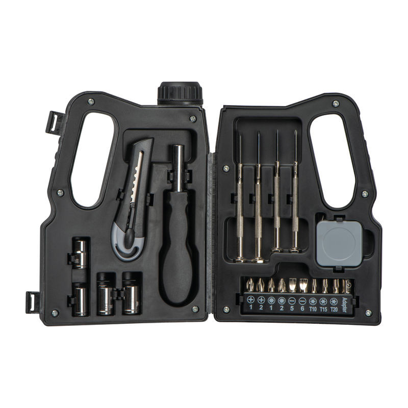 Klasszikus szerszámkészlet kanna alakú tokban. Praktikus és kompakt, ideális útközben és kisebb javításokhoz. Strapabíró és egyszerű tárolási megoldást nyújt.