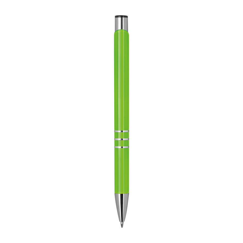 Lakkozott golyóstoll 3 díszítő gyűrűvel, kéken író tollbetéttel és nyíl formájú klipsszel.