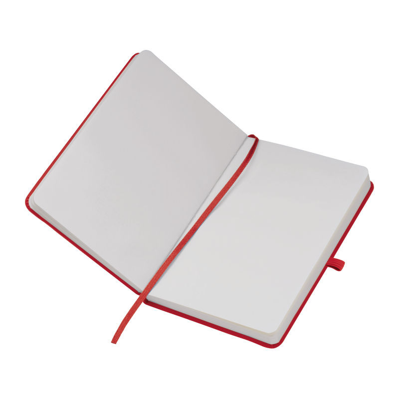A6 méretű jegyzettömb PU borítással, 190 sima fehér oldallal. Színes gumis pánttal, könyvjelző szalaggal és praktikus tolltartó hurokkal ellátva.