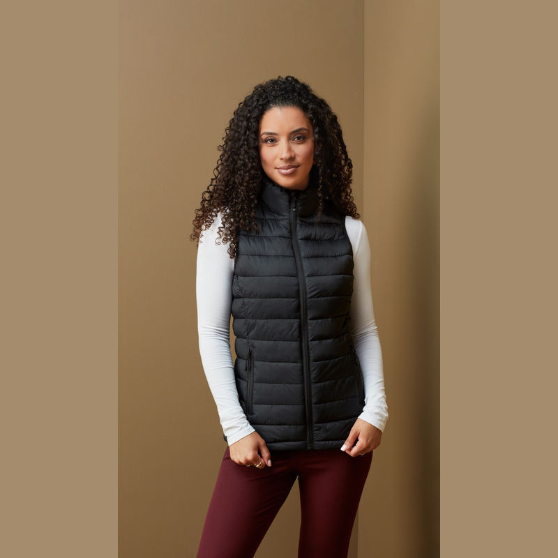 Ez a női steppelt mellény kiváló hőszigetelést nyújt könnyű súlya ellenére. Praktikus, összecsukható kialakításának köszönhetően saját belső zsebébe hajtogatható, így helyet takarít meg a szabadtéri kalandok során. külsőanyag és bélés: 100% nylon; töltet: 100% poliészter pehely alternatíva