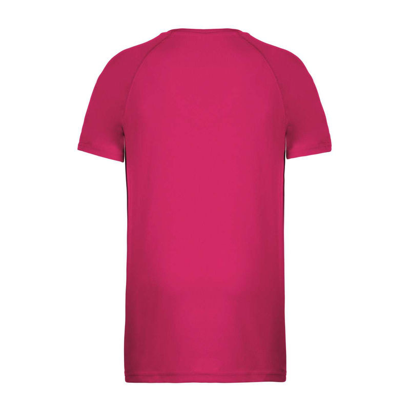100% poliészter. Gyorsan száradó könnyű szövet, raglán ujjak felső varrással. 140g/m²