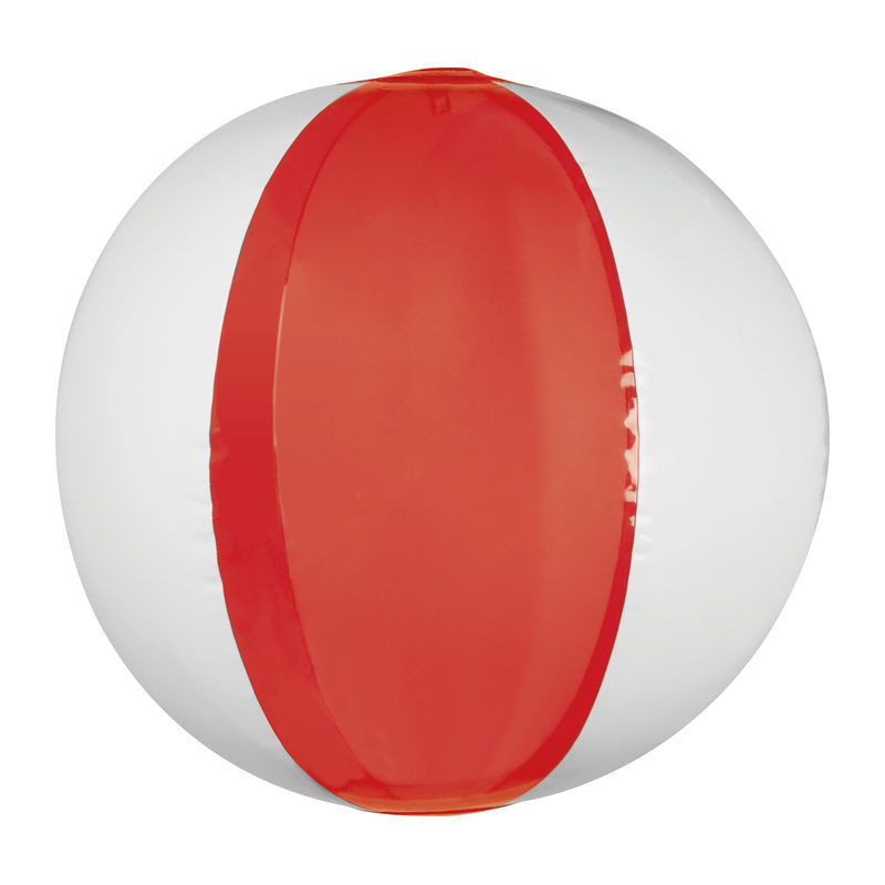 Ftalátmentes strandlabda, színes áttetsző és fehér szegmensekkel, minden EU szabálynak megfelelő.