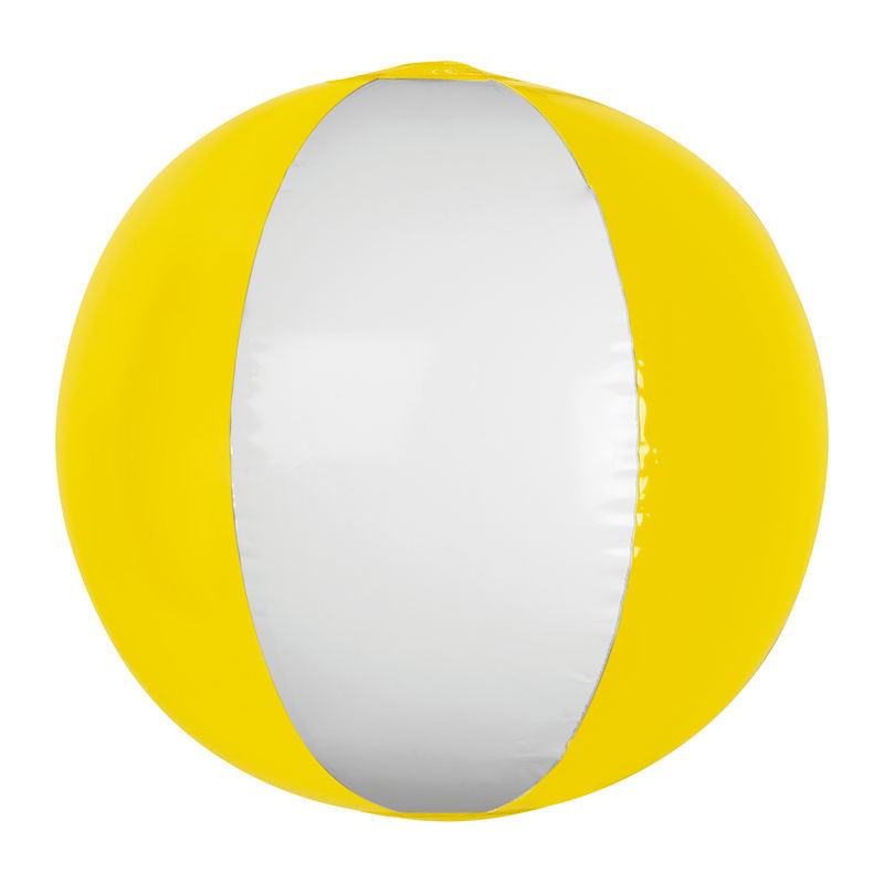 Ftalátmentes strandlabda, színes áttetsző és fehér szegmensekkel, minden EU szabálynak megfelelő.