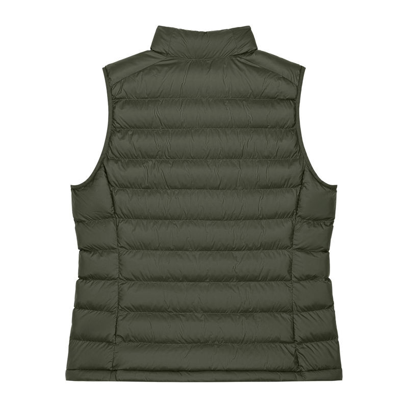 Ujjatlan kialakítás. Magas gallér. Fordított nejlon cipzár elöl, középen. Cipzáras zsebek díszszalaggal ellátott húzóval. Rugalmas szegőszalag a karkivágásnál. Teljesen steppelt kivitel. Oldalpanelek a jobb illeszkedésért. A belső varratok szegéllyel eldolgozva. Az alsó szegély állítható műanyag záróval és rugalmas zsinórral.