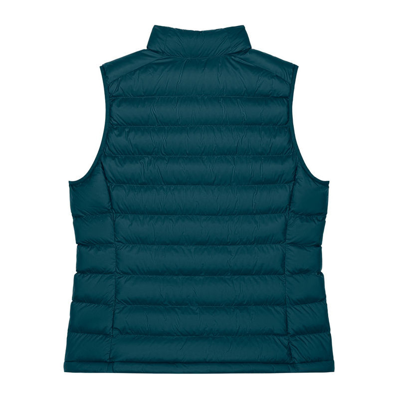 Ujjatlan kialakítás. Magas gallér. Fordított nejlon cipzár elöl, középen. Cipzáras zsebek díszszalaggal ellátott húzóval. Rugalmas szegőszalag a karkivágásnál. Teljesen steppelt kivitel. Oldalpanelek a jobb illeszkedésért. A belső varratok szegéllyel eldolgozva. Az alsó szegély állítható műanyag záróval és rugalmas zsinórral.